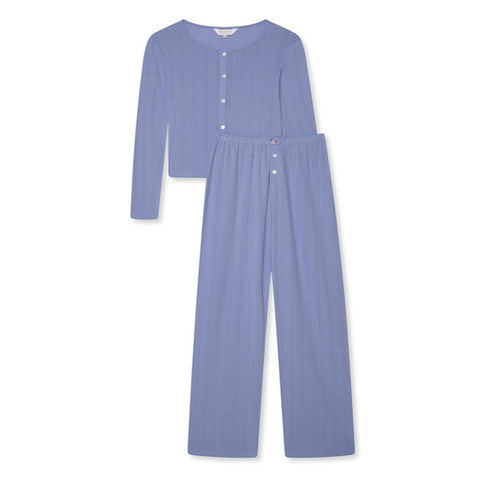 Pointelle Cardigan and Trouser Set- Blue Violet Sale