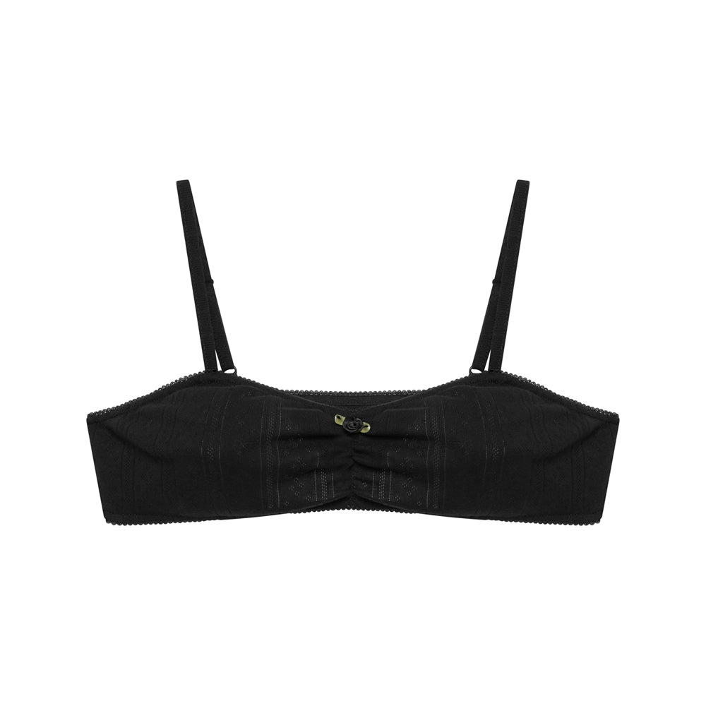 Our classic crop reimagined in a pull over style pointelle cotton in our most classic cream colourway. Fully adjustable straps and bow detail to front.