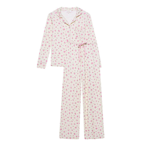 Stretch Ribbed Pyjama Trouser Set - Rose Bud Sale