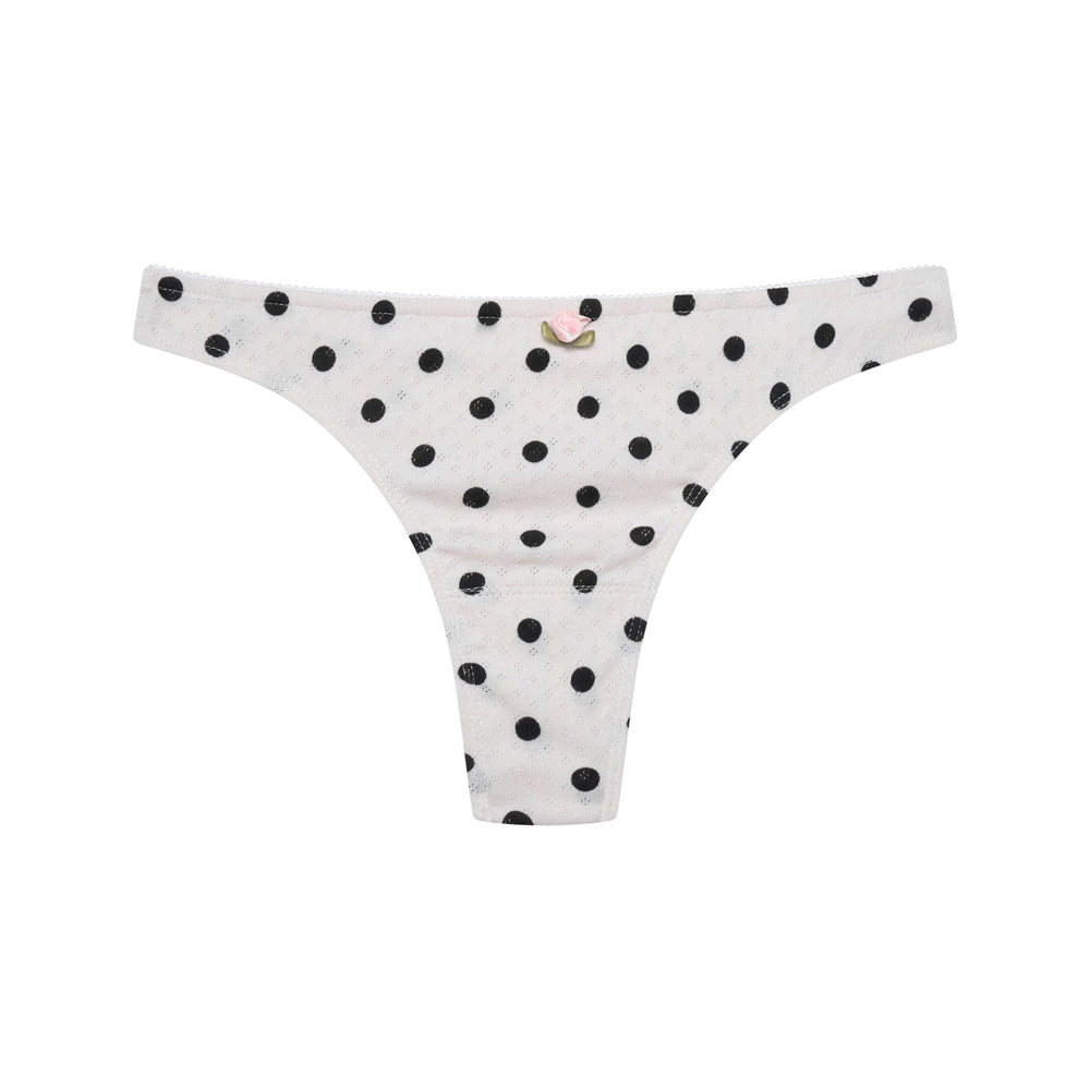 Pointelle Thong Knicker- Black Polka Dot Sale