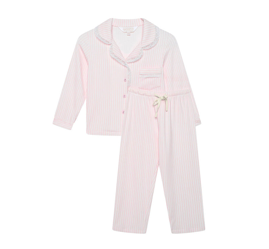 Children’s Modal Trouser PJ Set- Pink Stripe/Lace Sale