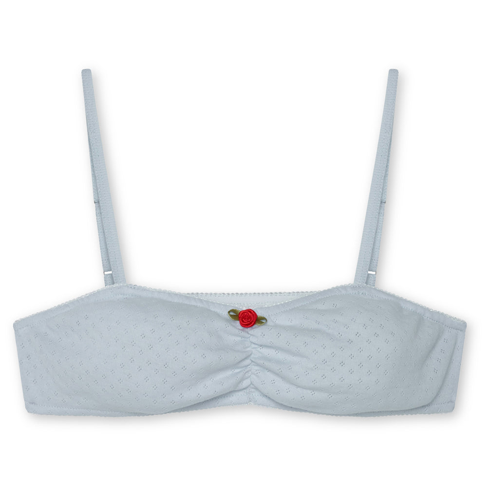 Our classic crop reimagined in a pull over style pointelle cotton in our most classic cream colourway. Fully adjustable straps and bow detail to front.